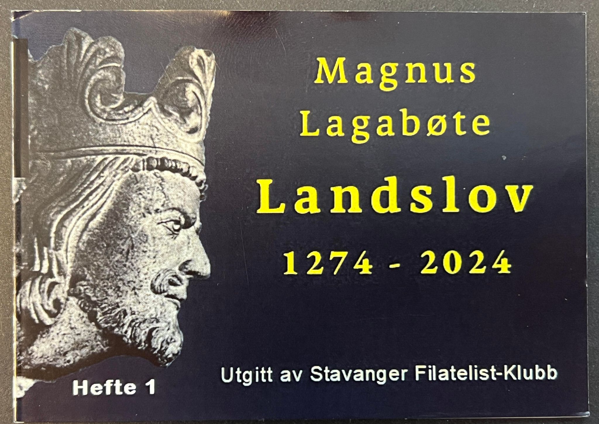 1 | Magnus Lagabøte Landslov 1274-2024. Lokalhefte med to stk personlig frimerke som viser Magnus Lagabøte, fra Stavanger Domkirke. Opplag 100 hefter. Illustrasjon hefte |