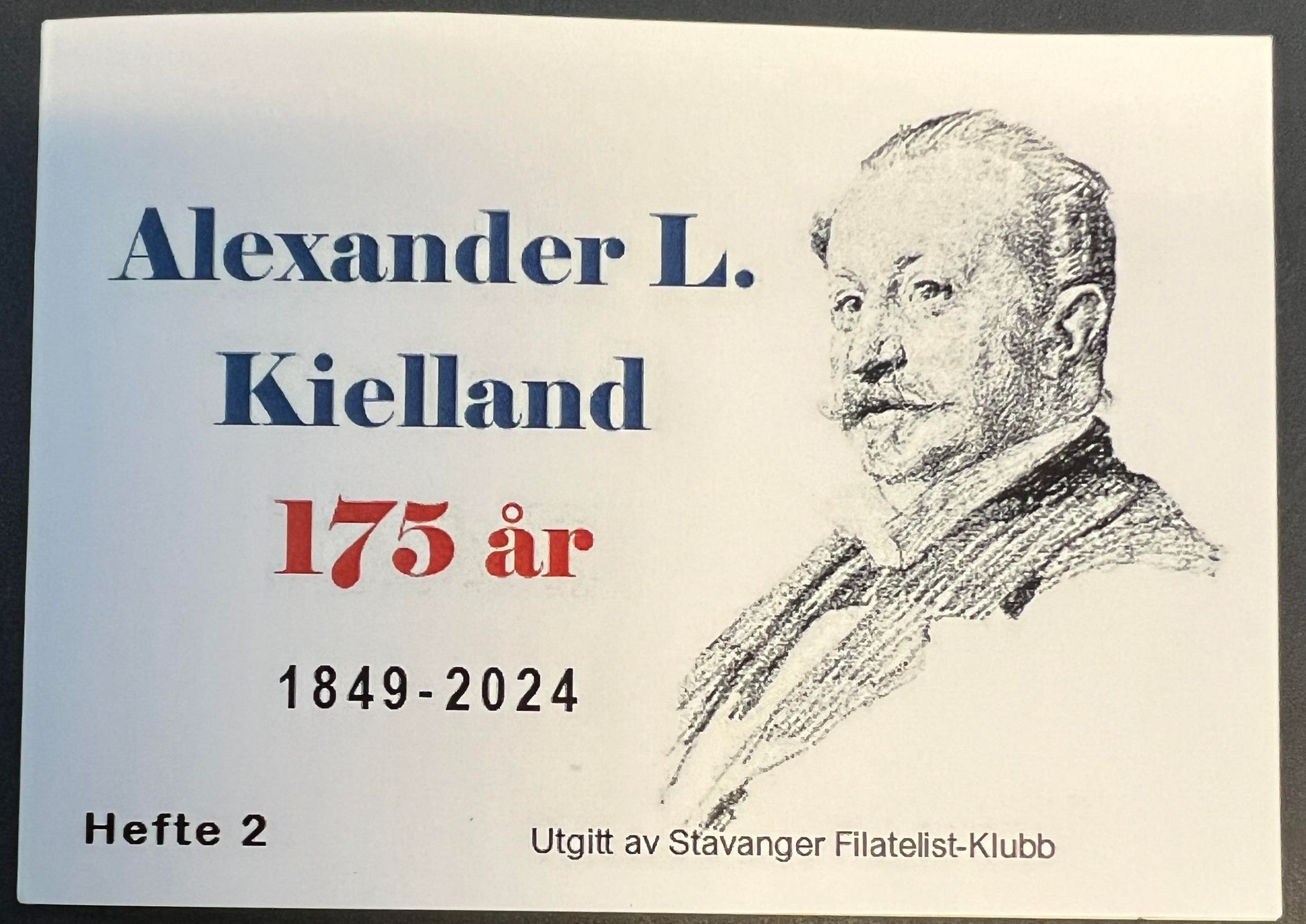 2 | Alexander L. Kielland 175 år 1849-2024. Lokalhefte med to stk personlig frimerke Alexander L. Kielland, portrett av Eilif Peterssen. Opplag 100 hefter. Illustrasjon hefte |
