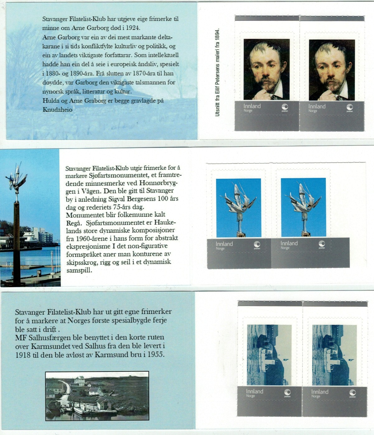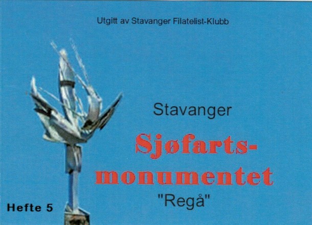 5 | Sjøfartsmonumentet "Regå". Lokalhefte med to stk personlig frimerke med foto av monumentet, et framtredende minnesmerke ved Vågen i Stavanger. Opplag 100 hefter. Illustrasjon hefte |