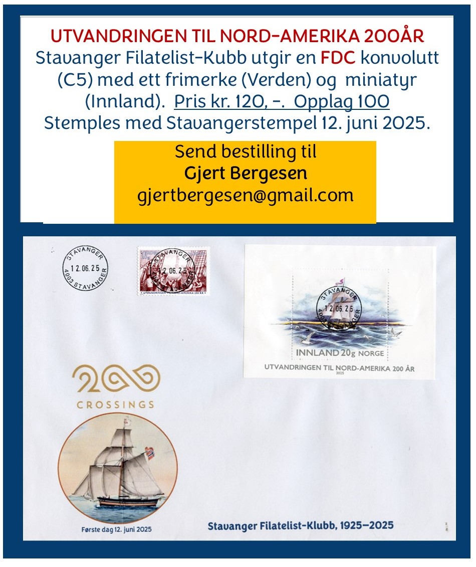 8 | Utvandringen til Nord-Amerika 200 år Førstedagskonvolutt - bestillingsinfo Den øverste kan fortsatt leveres. De to andre er utsolgt. |
